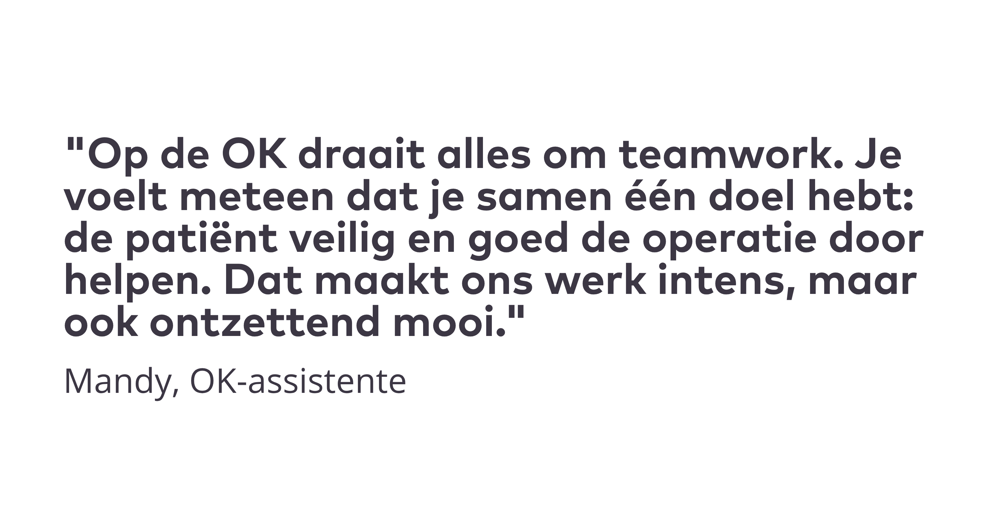 Een nuchtere, betrokken en professionele houding, waarbij je met leergierigheid en precisie zorgt voor een soepel verloop op de OK.